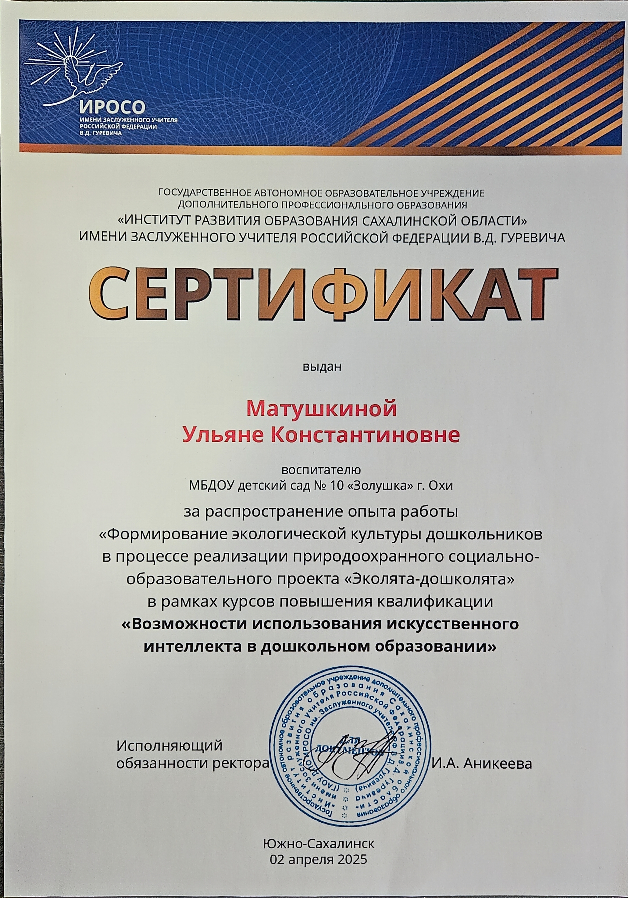 сайт Матушкиной Ульяны воспитатель МБДОУ детский сад №10 "Золушка" г. Оха